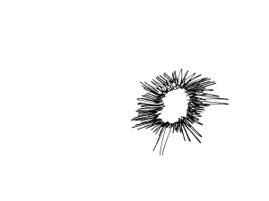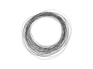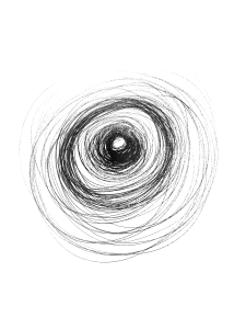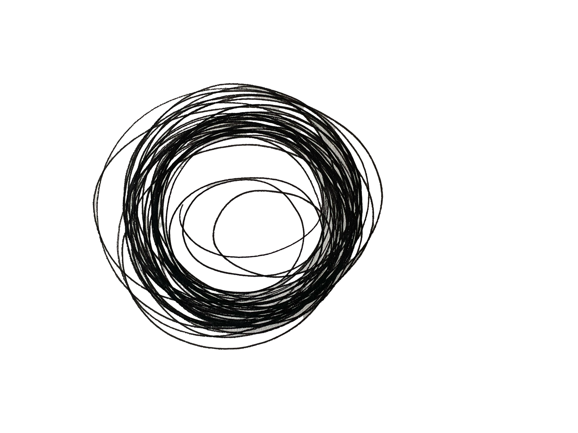 The hole in the Hagstone is, according to many, formed by erosion from the sea. There is, however, also a line of thinking that suggests that the hole came first, the pebble second. In this explanation, an animal initially occupied that space in death on the sea floor. After their body has decomposed, that space is only partially filled by sediment. This gives rise to a hole around which stone matter accumulates. What I come to appreciate when my friend picks up this stone is that the emptinesses at the centre of my circling sketches are not empty spaces at all, not anything close to empty. Rather, they are the centre around which to build. In the Hagstone, you can choose to see a hole or you can choose to see the space as something in its own right; something that has a rock around it. I can see these as sketches of indigo, or indigo’s impact. They are lines that speak to the plant’s presence in the room; the very effect it is having on our gathering. And they are also the lines of listening and a tool to listen with. As I watch the trial and attend the subsequent workshops, I hold my pen to the page in the same way I might turn an ear towards another person. These lines are both the method for, and the evidence of, indigo holding my attention.