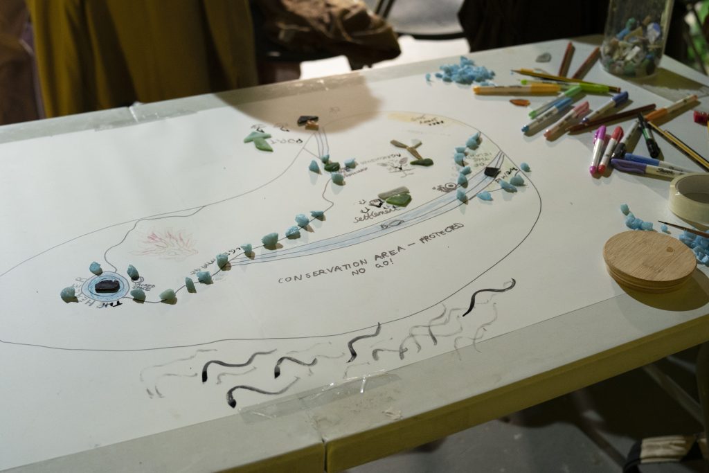 In the third part of the workshop, I also acted as an observer, moving between the two groups to observe and record. One group played the role of the indigenous inhabitants of an imaginary island and was responsible for developing the island. This included choosing living areas, sacred spaces, ports and more, while also designating large conservation areas for other forms of natural life to reproduce and thrive. The planning of these indigenous people reflected respect and concern for the protection of the natural environment, aiming for ecological harmony and coexistence.